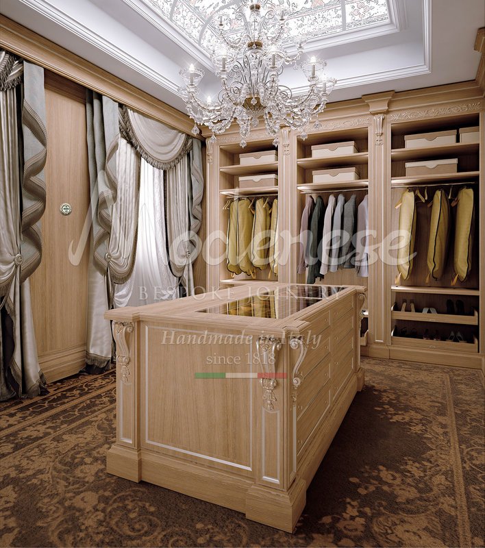 Modenese Bespoke производит кухни из массива ореха, вишни, дуба с ручной резьбой глубиной до 8 мм. Фасады украшают инкрустации из перламутра, латуни, слоновой кости (легальной, с сертификатами CITES). Патинирование проходит в семь слоев с промежуточной шлифовкой зернистостью от 180 до 1200 единиц. Золочение выполняется сусальным золотом 23,75 карата методом гульфарба — техникой, разработанной флорентийскими мастерами в XV веке.