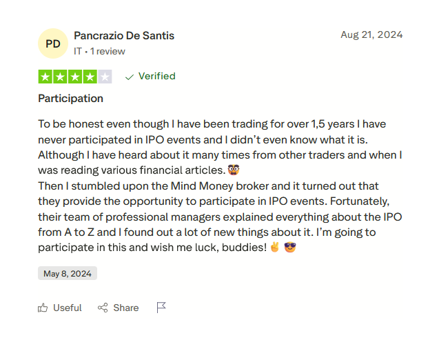 Такой тип отзывов подтверждает, что IPO и Pre-IPO встроены в экосистему сервиса естественным образом.