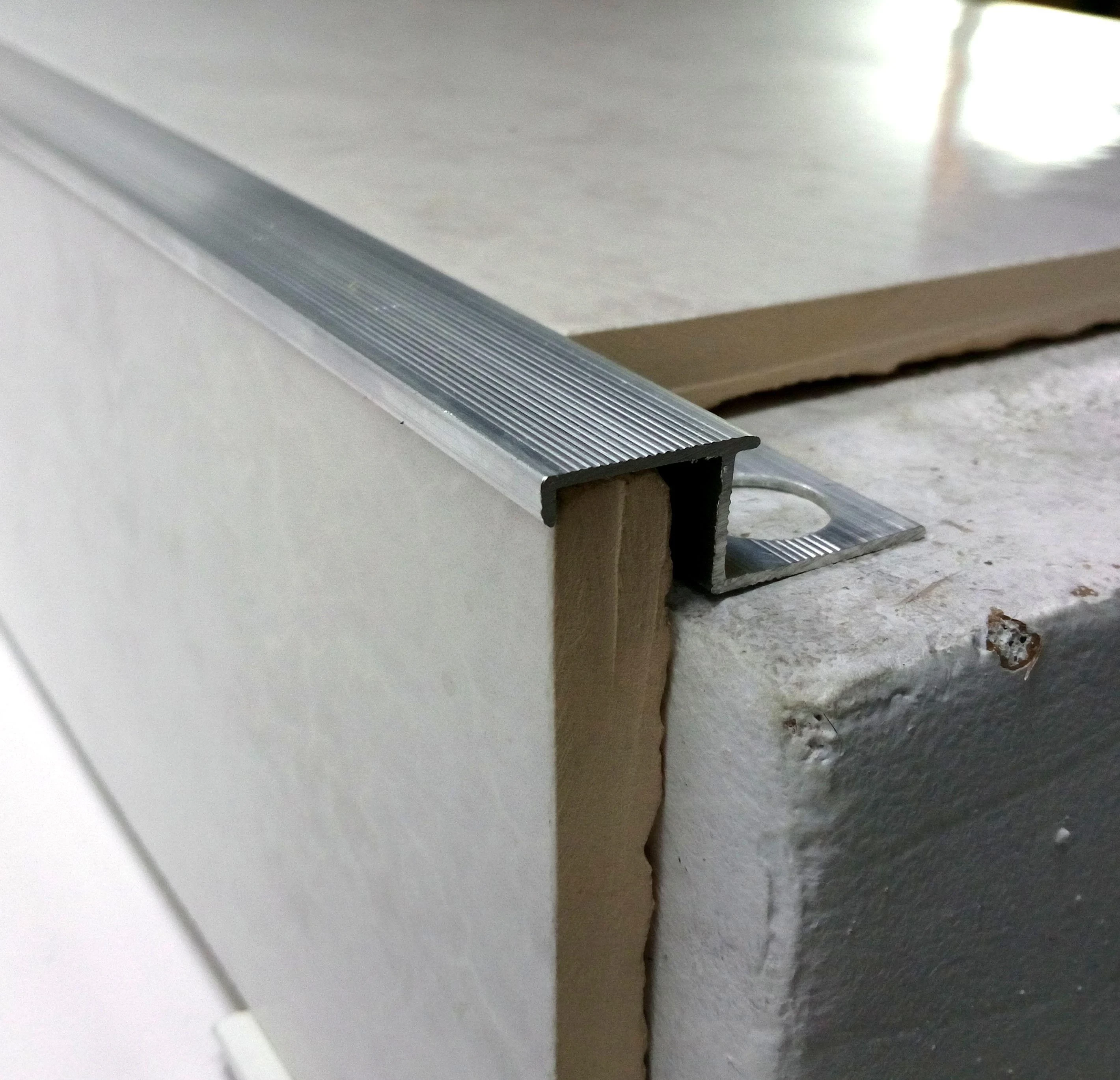 - Алюминиевый профиль ПЗ-10 применяется при оформлении торцов плитки, ступеней, ниш и других элементов интерьера. Он помогает избежать неровных краёв и придаёт облицовке законченный вид.