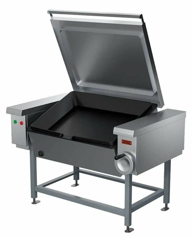 Опрокидывающаяся сковорода Проммаш СЭЧ-0,45 используется на предприятиях общественного питания и торговли для жарения основным способом и во фритюре, для тушения, припускания, пассерования, а также для приготовления на пару мясных, рыбных, овощных блюд и кулинарных изделий. Сварной каркас выполнен из черного металла с порошковым покрытием, облицовки - из углеродистой стали с покрытием, чаша - из чугуна, передняя облицовка и крышка - из нержавеющей стали.